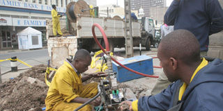 Access Kenya employees fix network cables in Nairobi. FILE