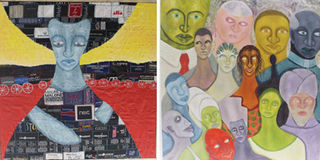 Left, Incognito and right, a painting on top of a stitched-label collage. PHOTOS | MARGARETTA WA GACHERU