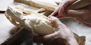 A worker carves ivory into the shape of the Chinese Deity Guanyin at a workshop in the southern Chinese city of Guangzhou. Photo/FILE