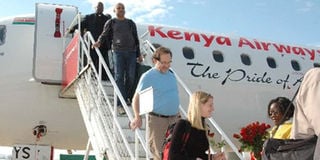 Passengers alight from a Kenya Airways plane in Kisumu. FILE