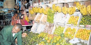 A vendor sells fruits at City Market, Nairobi, last month. A report by USAid says that between June and August, fruit consumption reduced due to inflation. File