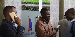 Chase Bank depositors outside a Nairobi branch after the lender was put under receivership by the Central Bank of Kenya on April 7, 2016. PHOTO | FILE