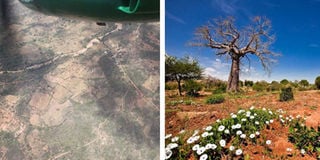 (Left) An aerial view of the mapping in process. (Right) White flowering acacia could be mapped with high accuracy: Kenya has a capacity to produce 100,000 tonnes of honey a year. PHOTOS | COURTESY