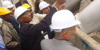 KenGen acting MD Simon Ngure ((in black coat)) at a past tour of Kindaruma Dam: He said the State firm will maintain its equity to debt ratio. Photo/FILE