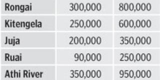 Along the Namanga Road in Kitengela, 40 kilometres South East of Nairobi, a similar piece of land is selling for about Sh800,000, compared to Sh600,000 last year and Sh100,000 five years ago.