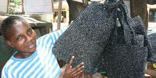 Recycled plastic handbags. Private sector players have been piling pressure on the government to reduce duty on imported paper to make products cheaper. Photo/ROBERT NYAGAH
