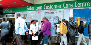 A Safaricom customer care centre in Nairobi. CCK has said that the mobile phone company has failed to meet minimum standards on quality of calls. File