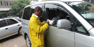 A parking attendant issues a receipt in Nairobi on Monday. City Hall plans to raise parking fees Photo/Paul Waweru