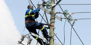 A Kenya Power technician at work: A dispatch system automatically picks the cheapest bands from power producers to keep costs low. PHOTO | FILE
