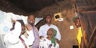 Kenya Power managing director Ben Chumo (centre) with Uasin Gishu deputy governor Daniel Chemno during the launch of Sh14bn electricity project for low-income earners at Kasarani Estate, Eldoret in February. PHOTO | JARED NYATAYA