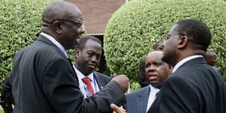 From left: Governors Moses Akaranga (Vihiga), Baringo’s Benjamin Cheboi, Transitional Authority chair Kinuthia Wamwangi and Finance Minister Njeru Githae. Photo/File