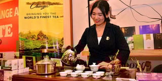 Cathy of Chinya Tea serves some Chinese Tea during the PISHI Indo-Chinese Food Expo held at the Westgate Mall on November 29th 2019. PHOTO | FRANCIS NDERITU | NMG