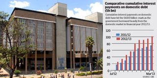 Central Bank of Kenya report shows the cumulative interest payments in the past one year were 36 per cent higher than in the 2011-2012 financial year. FILE