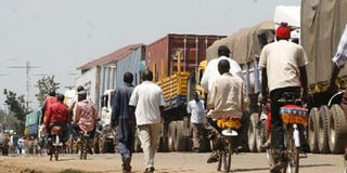Kenya-Uganda border in Malaba town. Non-tariffic barriers slow down cross-border trade in EAC.FILE