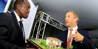 Hello Developments Limited director Ashton Towler (R) with Kenya Tourism Board MD Muriithi Ndegwa (L) during the launch of Mandharini Property Development at The Sankara Hotel on April 9, 2014. Photo/Diana Ngila