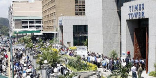 Taxpayers queue outside Kenya Revenue Authority offices in Nairobi to file returns last year. Four months to end of the fiscal year and the taxman has a huge revenue collection gap. Photo/File