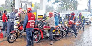 Boda boda operators queue for fuel at a petrol station in Nairobi. The cost of fuel has been on a down trend. PHOTO | SALATON NJAU