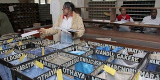 Sorting mail at Nyeri Post Office. The Postal Corporation of Kenya has embraced new technology and improved other services as it fights for space in the parcel delivery business. PHOTO | FILE