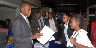 Graduates at the Helb offices at Anniversary Towers in Nairobi ahead of Thursday’s loan repayment deadline. The fund’s CEO, Mr Charles Ringera, announced a month’s extension. Photo/Salaton Njau