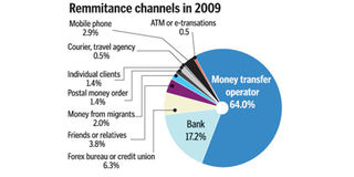 About 17 per cent of the remittances were channelled through commercial banks, while foreign exchange bureaus, postal money orders and personal deliveries were used to send the remaining portion.