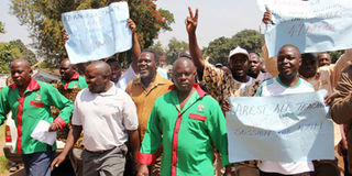 Teachers during last year’s national strike over pay. PHOTO | FILE