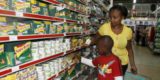 Shoppers at an Uchumi outlet in Nairobi. The retail chain is issuing an extra 99.5 million shares to its existing shareholders at Sh9 to raise Sh895 million for expansion. FILE PHOTO |