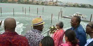 President Kenyatta with First Lady Margaret Kenyatta and other guests during the opening of EnglishPoint Marina in Mombasa on January 12, 2016. PHOTO | KEVIN ODIT