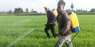 Most farmers do not observe any protective measures during spraying. FILE PHOTO | NMG