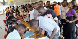 Youth registering for job interviews in Mombasa. FILE PHOTO | NMG