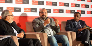 Form left: Arab Bank Economic Development in Africa director-general Carlos Lopes, Safaricom chief innovation officer Kamal Bhattacharya and ICT principal secretary Victor Kyalo during the Innovation Summit Africa 2018 in Nairobi last week. PHOTO | SALATON NJAU | NMG