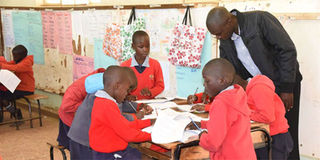 Grade Three learners at Patrician Primary School-Kabongo in Eldoret being examined in the recent national assessment under CBC. PHOTO | JARED NYATAYA
