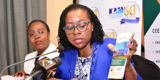 Kenya Association of Manufacturers head of consulting Joyce Njogu (left) and chief executive Phyllis Wakiaga during a meeting the Big Four agenda in Nairobi on November 28, 2019. PHOTO | SALATON NJAU | NMG