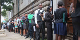 Jobseekers wait to be interviewed. FILE PHOTO | NMG
