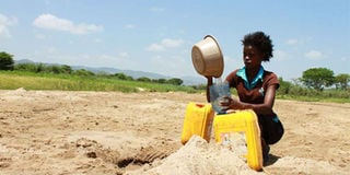 A woman draws water from a shallow and temporary source in Makueni County. FILE PHOTO | NMG