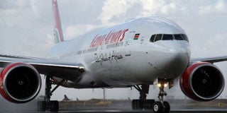 A Kenya Airways plane at Jomo Kenyatta International Airport in Nairobi. PHOTO | FILE