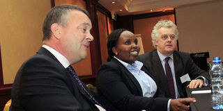 GuanrantCo regional director East and Southern Africa Janice Kotut (centre) with managing director Chris Vermont(right) and chairman Andrew Bainbridge (left) in Nairobi. PHOTO | FILE