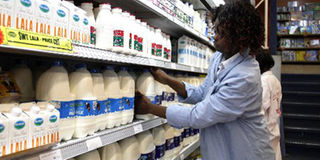 A supermarket attendant at work in the milk section. Brookside Dairies has firmed its grip on the local milk market with acquisition of Buzeki, the makers of Molo Milk. Photo/FILE