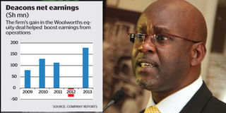 Clothing and household goods retailer Deacons has reported Sh405.8 million earnings from the sale of a 51 per cent stake in its regional Woolworths franchise to the brand owners, Woolworths Holdings of South Africa.