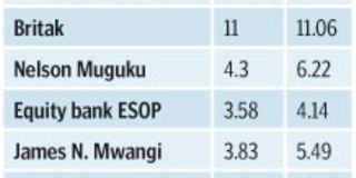 Mr Muguku cut his stake to 4.3 per cent last year from 6.08 per cent the previous year—earning the family more than Sh1.2 billion while Mr Kangema earned more  Sh700 million, reducing his stake to 2.22 per cent from 3.28 per cent.