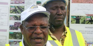 Kenya National Highway board member Julius M’ndegwa and director general Peter Mundinia (right) address journalists in Mombasa in May. PHOTO/FILE