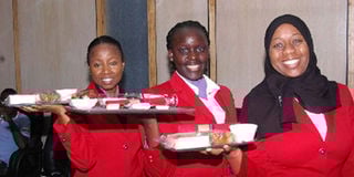 An airline’s cabin crew at a past event. KAA is seeking global fast-food chains to open shop at the Jomo Kenyatta International Airport in Nairobi. FILE
