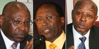 From left: Investment banker Jimnah Mbaru, Centum chairman Chris Kirubi and ex-taxman Michael Waweru. PHOTOS | FILE