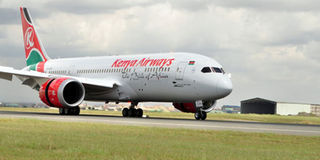 A Kenya Airways plane at JKIA, Nairobi. PHOTO | FILE