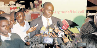 NSSF acting managing trustee Tom Odongo during a past press conference. Mr Odongo said NSSF would be presenting candidates for election at the upcoming annual general meeting. DIANA NGILA