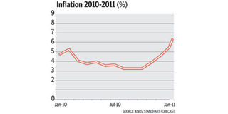 London-based Standard Chartered Plc analysts expect inflation to stand at 7.8 per cent in 2011 and 6.9 per cent in 2012, with the possibility of an upward revision in view of rising oil prices as political unrest spreads through the Arab world.