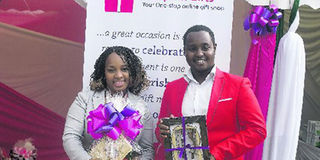 Diana Martha Mwaniki (left) and Aryton Bett, founders of Purpink Gift Shop. Photo/SIMON CIURI