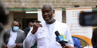 United Nations Population Fund's (UNFPA) Representative for Kenya Dr Ademola Olajide speaking to the press at Pumwani Maternity Hospital on August 25, 2020. PHOTO | KANYIRI WAHITO | NMG