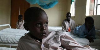 Seven year old Alex Kipkotot back in hospital after developing Post Kala Azar Dermal Leishmaniasis. He had to drop out of school after contracting the disease. PHOTO | SANDRA CHAO