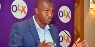 OLX country manager Peter Ndiangui speaks at the Intercontinental Hotel in Nairobi on April 25, 2017 during the launch of a new service by OLX. FILE PHOTO | NMG