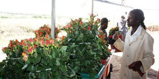 A worker at Expression Flora inspects flowers at the grading and packaging section of the flower firm. Trials are under way to use sea freight for flowers. File